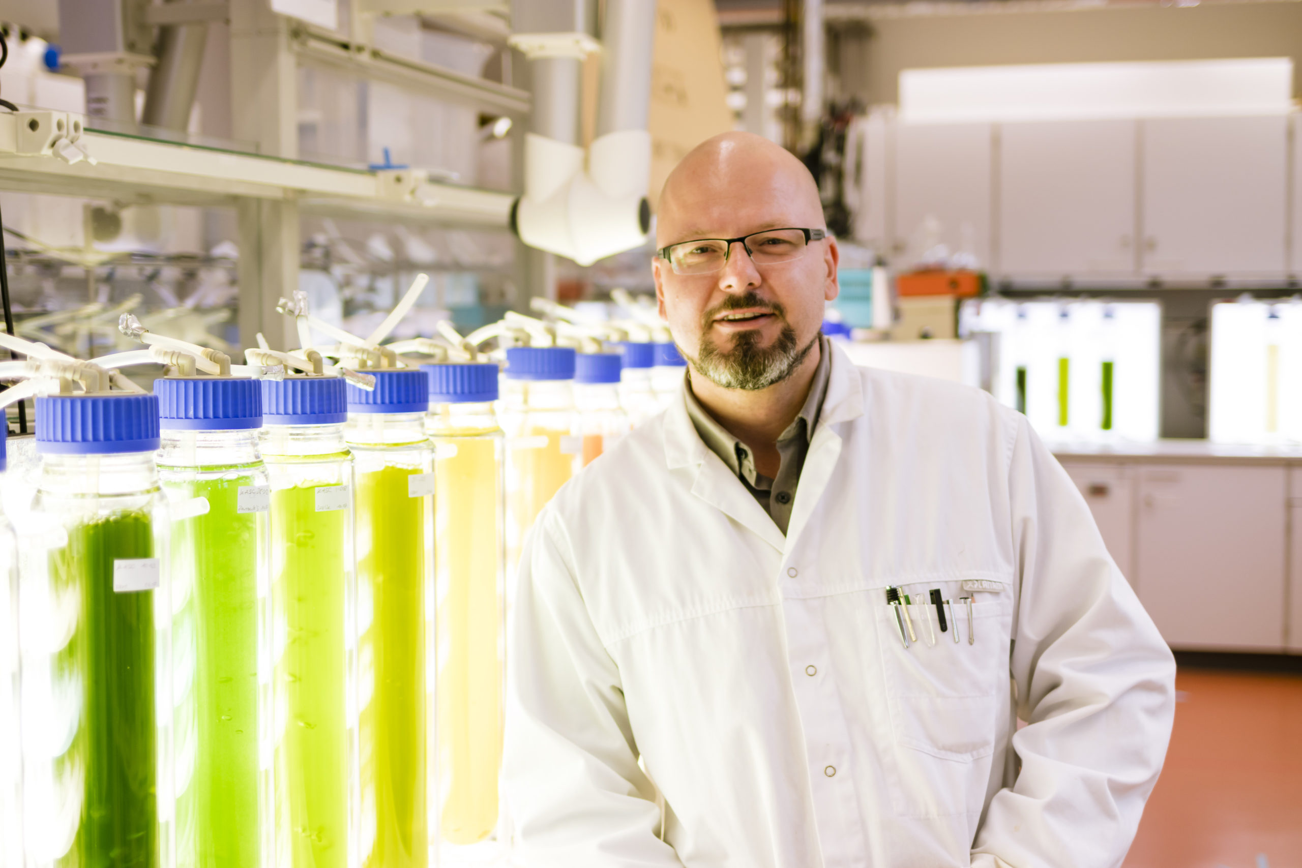 Von Angehörigen der Hochschule Anhalt wurde ich zum einen über das Gelände der Solaranlagen und zum anderen durch die Labore der Algen-Forschung geführt.